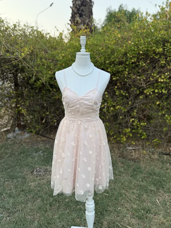پیراهن زنانه کوتاه تور صورتی برند shein